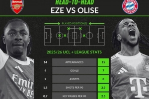 體育資訊11月26日訊 拜仁和阿森納即將迎來歐冠榜首之爭,兩位前水晶宮球員奧利塞和埃澤當(dāng)前狀態(tài)火熱。whoscored也對比了兩人本賽季聯(lián)賽+歐冠的場均關(guān)鍵數(shù)據(jù),后者全面占優(yōu)。