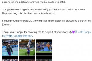 今日阿代米更新個(gè)人微博,向天津球迷告別。他寫(xiě)道: