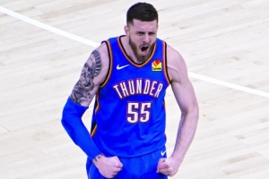 此役,雷霆內(nèi)線哈爾滕施泰因出戰(zhàn)28分鐘,10投6中,罰球6中3,得到15分7籃板2助攻1搶斷1蓋帽的數(shù)據(jù)。華萊士得到9分3板2助2斷,米切爾得到13分2板3助。