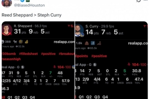 賽后火箭媒體人@BiasedHouston曬出謝潑德和庫(kù)里本場(chǎng)數(shù)據(jù),寫(xiě)道:“謝潑德>庫(kù)里?!?/p>