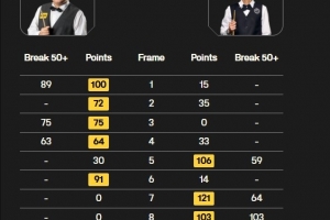 斯諾克英錦賽1/4決賽:尼爾·羅伯遜在上半場(chǎng)3-1領(lǐng)先龐俊旭