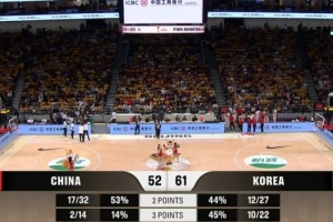 體育資訊11月28日訊 男籃世亞預(yù)階段一,中國男籃三節(jié)52-61落后韓國男籃。