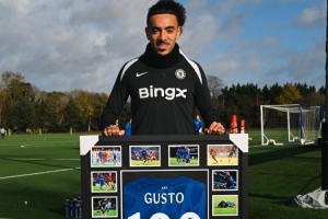 此役是古斯托為切爾西出戰(zhàn)的第100場(chǎng)比賽,他總計(jì)打進(jìn)1球,助攻14次。古斯托獲贈(zèng)藍(lán)軍生涯百場(chǎng)紀(jì)念球衣,切爾西社媒曬出他與紀(jì)念球衣的合照。