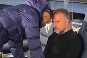 盡管主場取勝,但巴薩主帥弗里克對球隊本場比賽的表現(xiàn)似乎并不完全滿意。終場哨響后,DAZN的轉(zhuǎn)播鏡頭拍到弗里克一臉嚴肅地留坐在替補席上,與本場表現(xiàn)出色,被換下的拉菲尼亞交換著意見。交流過程中,弗里克神情嚴肅,幾次搖頭。