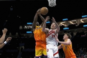 GIF-賽恩·詹姆斯與珀?duì)柼貭枲?zhēng)搶籃板出界,裁判吹猛龍球權(quán);黃蜂挑戰(zhàn)成功,拿回球權(quán)
