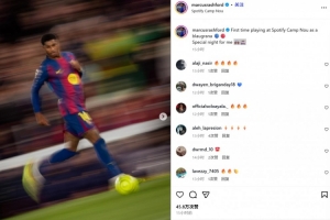 28歲的拉什福德本賽季從曼聯(lián)租借加盟巴薩,各項賽事18場已貢獻6球8助攻。