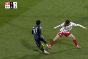 這次判罰存在雙重爭(zhēng)議:首先犯規(guī)地點(diǎn)恰在禁區(qū)線(xiàn)上,若判罰犯規(guī)本應(yīng)是皇馬的點(diǎn)球。此外上半場(chǎng)皇馬還有一粒進(jìn)球因姆巴佩射門(mén)前明顯手球而被判無(wú)效。