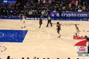 本場比賽加時(shí)賽,喬治先行下班,打完一個(gè)加時(shí)之后,恩比德也下班。