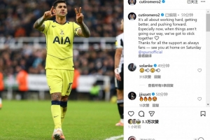 羅梅羅社媒曬出比賽照片,配文:“一切都關(guān)乎努力拼搏、不斷進(jìn)步、勇往直前。尤其在當(dāng)下,當(dāng)事態(tài)不如意時(shí),我們更要團(tuán)結(jié)一心??”