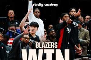 賽后,開拓者官方分享本場比賽贏球海報(bào),鏡頭給到慶祝時(shí)的替補(bǔ)席,楊瀚森和利拉德入鏡。