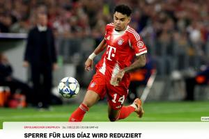 拜仁官方:迪亞斯禁賽上訴成功,歐冠禁賽由3場(chǎng)縮短至2場(chǎng)