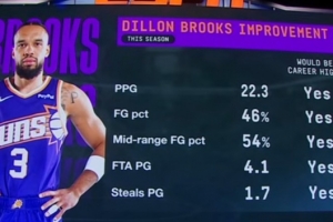 場均22.3分1.7斷4.1次罰球出手,投籃命中率46%,中距離命中率54%