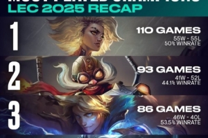 體育資訊12月6日訊 LEC2025賽季回顧:選用最多次數(shù)的英雄芮爾&被禁最多次數(shù)的英雄大樹(shù)???。