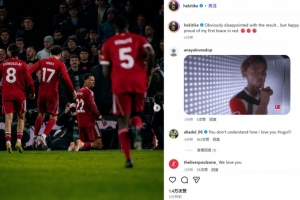 他也在賽后通過(guò)社媒曬出自己的滑跪慶祝照,并配文:“顯然對(duì)結(jié)果感到失望,但也為我在利物浦的首次雙響感到高興和自豪?!?/p>