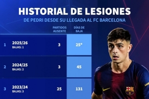 佩德里近5個賽季傷病情況: