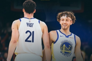 賽后勇士官方曬出本場贏球海報(bào),封面人物是波杰姆斯基和波斯特。