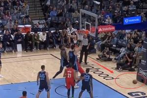 斯普利特直接進(jìn)場(chǎng)示意想要挑戰(zhàn),但灰熊突然發(fā)球直接到前場(chǎng)了