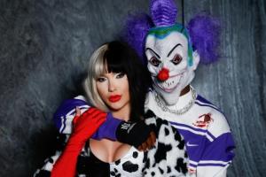 維尼修斯打扮成紫色的小丑,女友弗吉尼亞則cos了迪士尼動畫《101忠狗》中的經(jīng)典反派角色庫伊拉,一同出cos的還有她與前夫的三個(gè)孩子。