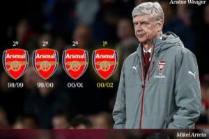 體育資訊12月08日訊 溫格曾在1998-1999、1999-2000、2000-2001三個賽季三連亞后第四年奪冠,如今阿爾特塔也步入三連亞后的第四年。