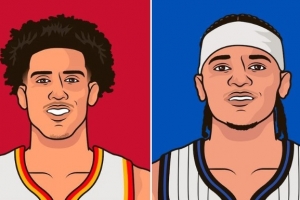 杰倫·約翰遜本賽季場(chǎng)均23.4分10.5板7.9助攻,三項(xiàng)命中率53/40/81%;