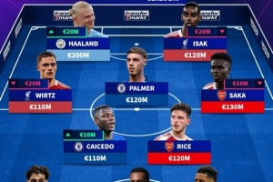 前鋒:維爾茨(利物浦,1.1億歐元)、哈蘭德(曼城,2億歐元)、伊薩克(利物浦,1.2億歐元)、薩卡(阿森納,1.3億歐元)