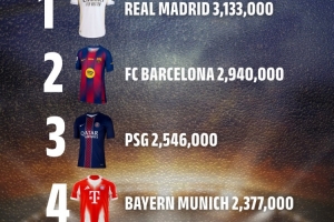 2025年全球球衣銷售排行:皇薩前二,邁阿密第五,利雅得勝利第十