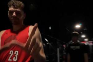 開拓者球員賽后經(jīng)過通道高喊勝利比出“W”手勢 楊瀚森不夠興奮呀