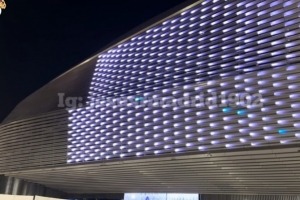體育資訊12月13日訊 有馬德里當(dāng)?shù)夭┲鲿癯霎嬅?,皇馬主場伯納烏球場正在夜晚進行外景的燈光測試。