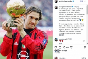 舍瓦社媒回顧21年前斬獲金球獎(jiǎng):相信烏克蘭會(huì)再次迎來(lái)金球得主