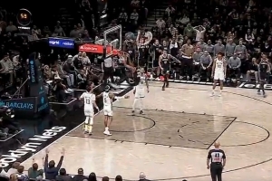 三個人看著人家扣!籃網(wǎng)三線快攻 克拉克斯頓雙手大猩猩暴扣!