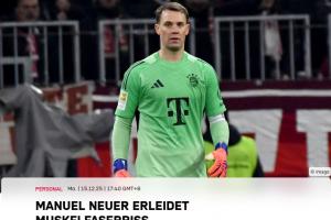 拜仁官方:諾伊爾在對(duì)陣美因茨比賽中肌肉纖維撕裂,將暫時(shí)缺陣