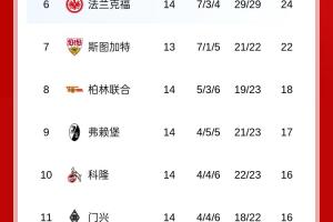 體育資訊12月15日訊 德甲第14輪基本結(jié)束,拜仁2-2美因茨9分領(lǐng)跑,此前第2的萊比錫本輪1-3不敵柏林聯(lián)合,第3的多特1-1憾平弗賴堡,最新積分榜如下: