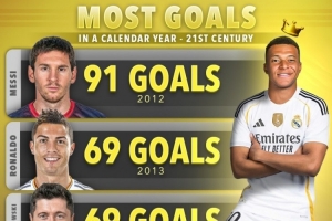 體育資訊12月15日訊 西甲第16輪比賽,姆巴佩破門,皇馬客場2-1擊敗阿拉維斯。據(jù)Score90統(tǒng)計,姆巴佩2025年打進63球,排名本世紀自然年進球榜第四位。