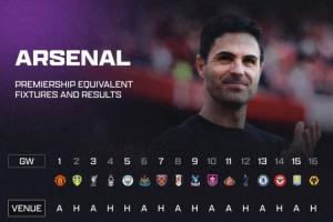 英超戰(zhàn)至第16輪,阿森納2分領(lǐng)跑英超積分榜,有媒體對(duì)比了阿森納本賽季前16輪比賽,與上賽季相同賽程的16場(chǎng)比賽的戰(zhàn)績。
