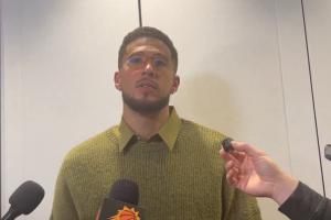 記者表示他看到布克在那個(gè)判罰后與裁判聊了會(huì)兒,布克則是表示:“他是說(shuō)我打到詹姆斯的手腕了,這是在說(shuō)謊,我回看了的。”