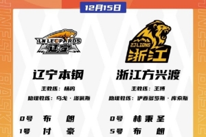 體育資訊12月15日訊 今晚7點35分,遼寧男籃將在主場對陣廣廈男籃。
