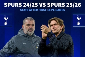 體育資訊12月16日訊 熱刺在本賽季英超表現低迷,新帥弗蘭克執(zhí)教未能達到預期,《轉會市場》統(tǒng)計顯示熱刺的表現還不及上賽季同期。