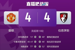 體育資訊12月16日訊 在本輪英超聯(lián)賽中,曼聯(lián)4-4戰(zhàn)平伯恩茅斯,3次取得領(lǐng)先但最終依然沒能拿下勝利。