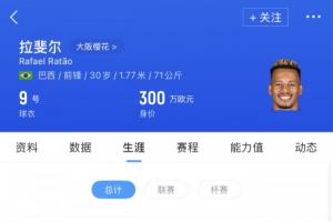 拉唐現(xiàn)年30歲,上賽季租借效力于大阪櫻花,出場44次打入23球4助攻,目前他的德轉(zhuǎn)身價是300萬歐元。