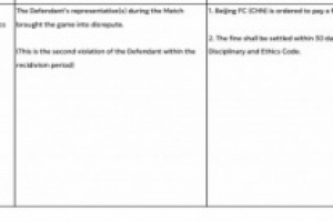 亞足聯(lián)官方表示,國安的行為損害比賽聲譽,違反亞足聯(lián)紀律和道德準則第50.1條,這是國安第二次違規(guī),對國安處以6250美元罰款,罰款應自本決定送達之日起30日內(nèi)支付。