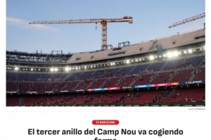 體育資訊12月16日訊 《阿斯報》曬照,諾坎普球場第三層看臺正在成形。