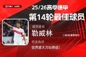 第14輪評選結(jié)果出爐,斯圖加特球員勒威林獨(dú)造三球,并轟出無解世界波,助球隊(duì)大勝不萊梅,獲得吧友超1萬票支持,當(dāng)選【體育資訊X小紅書德甲第14輪最佳球員】!