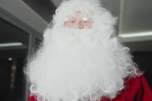 哈蘭德在化妝師的幫助下,粘上濃密的白眉毛和白胡子,雙頰抹上北極最著名居民特有的玫瑰紅胭脂。隨后他在外套里塞進(jìn)一個(gè)大枕頭。