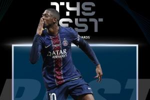 體育資訊12月17日訊 2025年FIFA年度最佳頒獎(jiǎng)典禮正在進(jìn)行,巴黎圣日耳曼前鋒登貝萊當(dāng)選2025年度FIFA最佳球員!