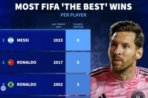 體育資訊12月17日訊 FIFA年度頒獎典禮結(jié)束,登貝萊獲FIFA年度最佳球員。德轉(zhuǎn)列FIFA年度最佳球員獲獎次數(shù),梅西8次最多,C羅第二,齊達內(nèi)、羅納爾多并列第三。