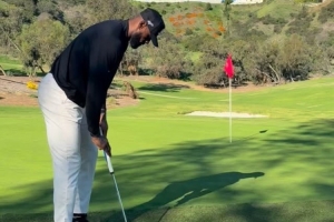 仍需努力!詹姆斯曬打高爾夫片段:小鳥(niǎo)球打短 最后一桿發(fā)力過(guò)猛