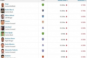 體育資訊12月17日訊 德轉(zhuǎn)更新中超球員身價(jià),古加、布爾克成為中超身價(jià)下降最多的球員,兩人均下降70萬歐。
