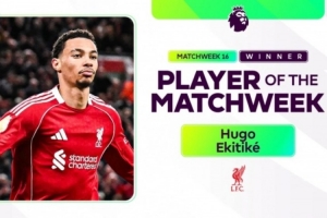 體育資訊12月17日訊 英超官方消息,利物浦前鋒?;倏吮辉u為聯(lián)賽第16輪最佳球員。