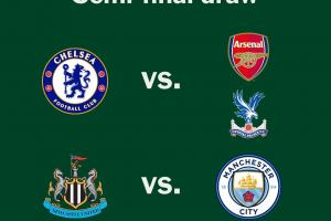 體育資訊12月18日訊 聯(lián)賽杯半決賽對陣抽簽結(jié)果出爐,切爾西將對陣阿森納vs水晶宮的勝者。