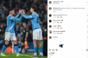 他也在賽后通過社媒曬出自己被查理·格雷換下時的兩人擊掌致意合照,并配文:“晉級半決賽,祝賀你上演首秀!”
